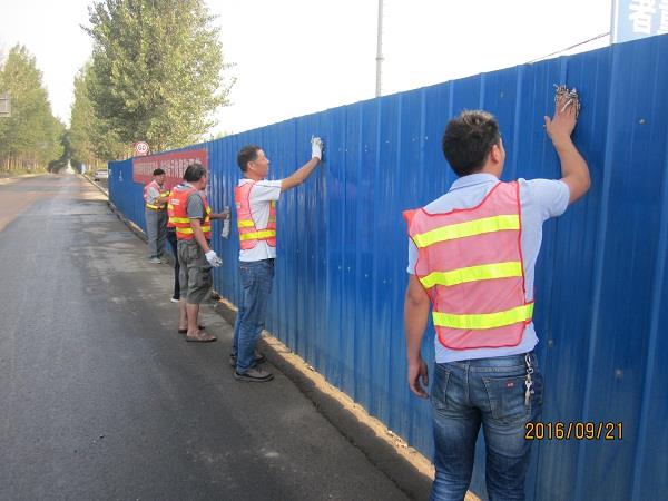G107線八標(biāo)項(xiàng)目部組織人員清洗施工圍擋