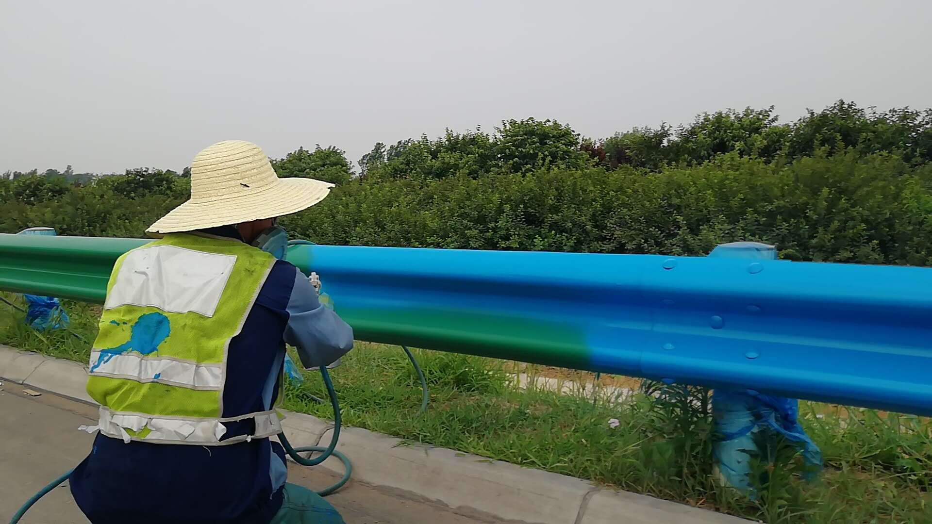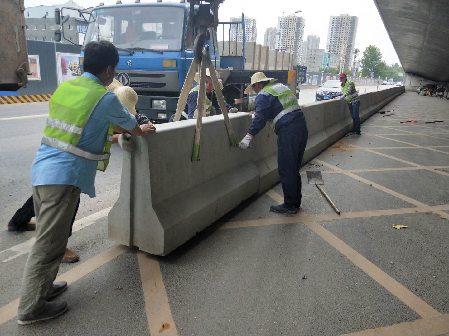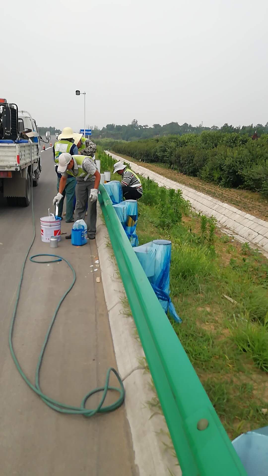 端午節(jié)來臨,騰盛員工響應總公司號召,立志開創(chuàng)大干快干新局面。一線工程部門人員放棄節(jié)假日,分兩組施工。一組在于大學南路為鋼護欄噴漆,一組在于須水立交下安置新澤西護欄。腳踏熱土,頭頂烈日,辛苦付出,無怨無悔,感人至極,遂作此言。