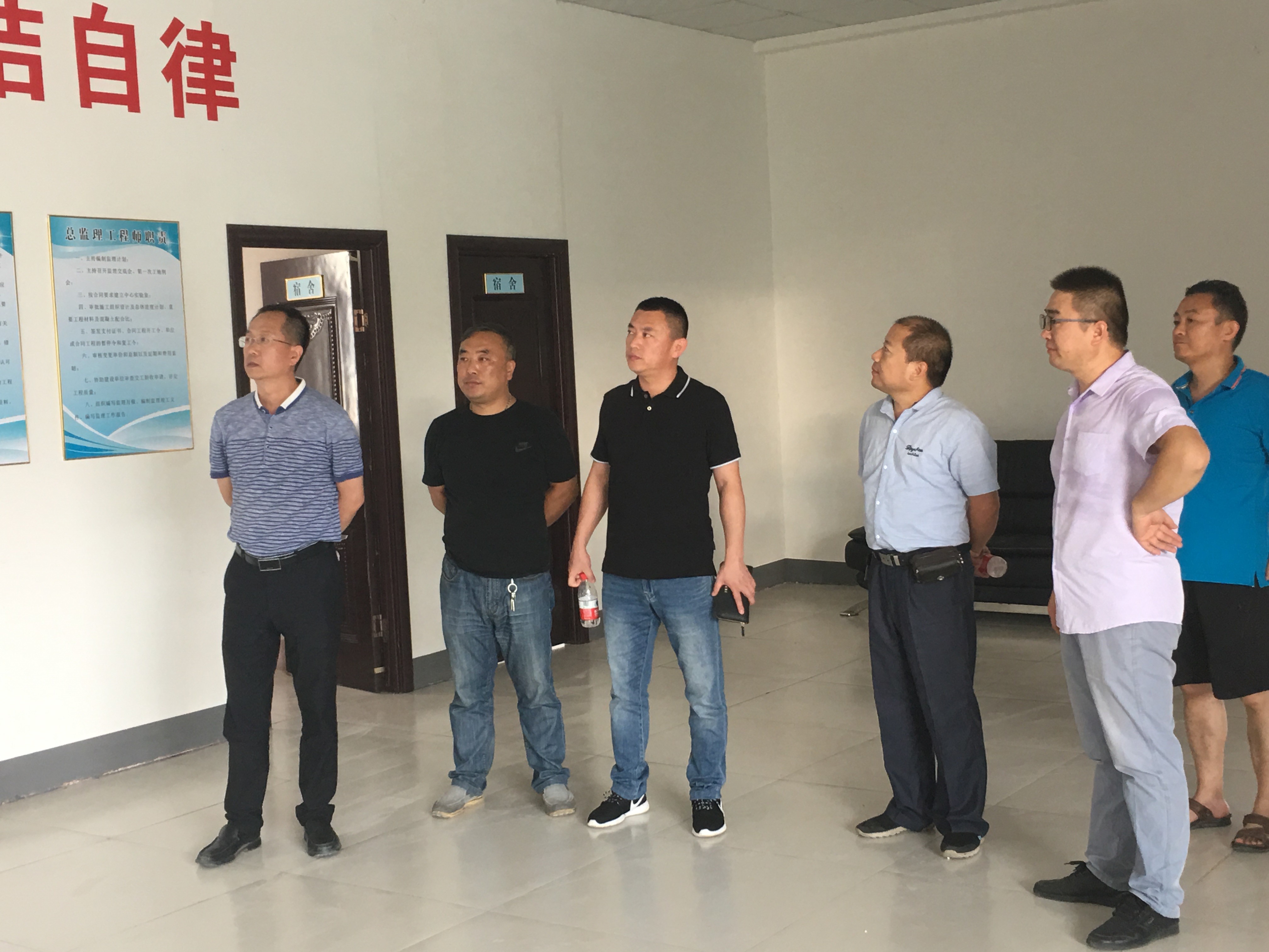7月27日,公司董事長(zhǎng)胡香凱、總經(jīng)理郭孟濤、總工程師李子云在經(jīng)理李虎的陪同下到省道317鄭州與開封交界至航空港區(qū)改建工程項(xiàng)目總監(jiān)辦調(diào)研指導(dǎo)工作。對(duì)總監(jiān)辦的駐地建設(shè)、項(xiàng)目監(jiān)理等工作作出指示。