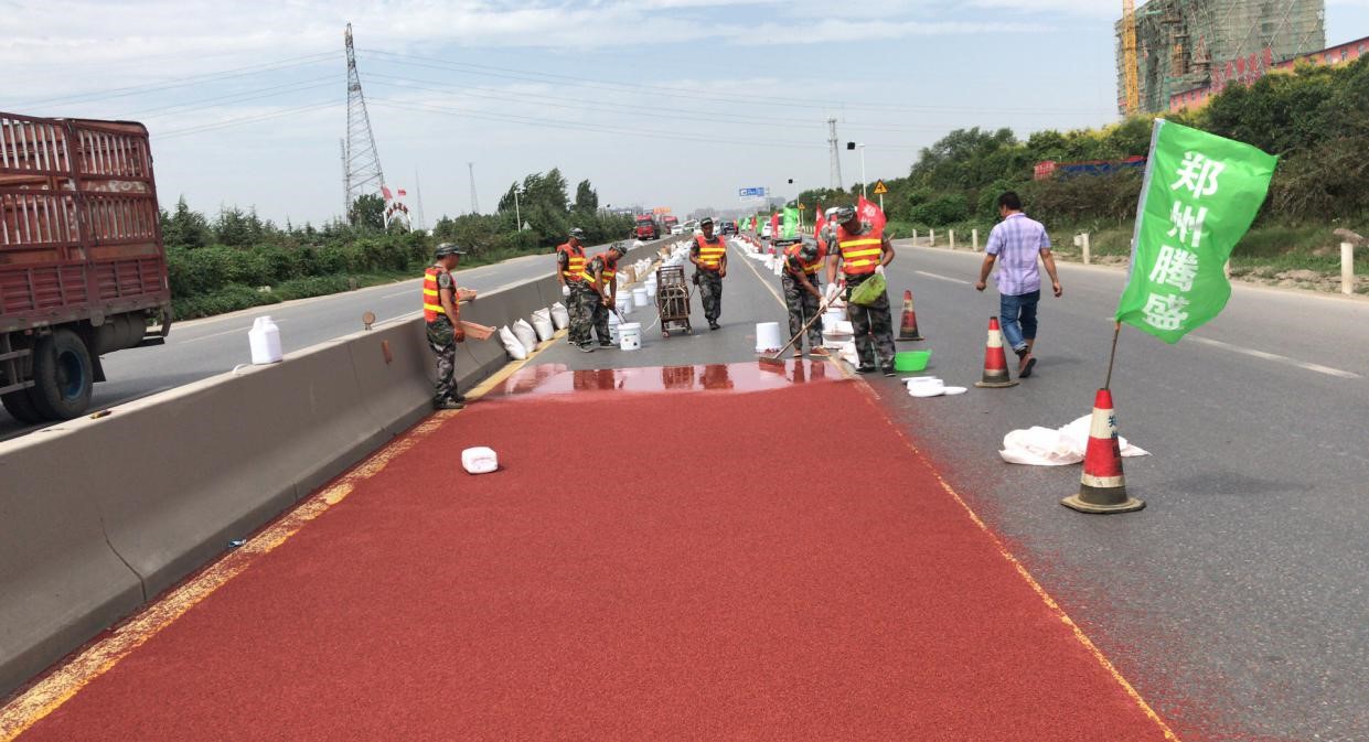 為改善鄭州市國省干線道路單一化、老舊化現(xiàn)象,推進(jìn)我市道路多元化、多彩化發(fā)展,使公路成為城市多姿多彩的一道風(fēng)景線,鄭州市公路管理局在G107京深線安防工程中計劃中實(shí)施彩色路面設(shè)計。我公司作為中標(biāo)單位承接了該項(xiàng)目的實(shí)施工作。經(jīng)過多方調(diào)研考察,在經(jīng)過充分的前期準(zhǔn)備工作后,于日前啟動了G107國道彩色防滑路面工程。