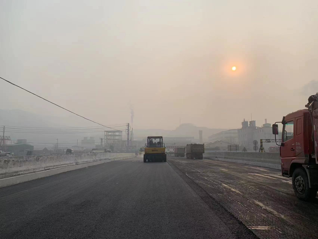 2023年1月5日新年伊始,鞏義米河鎮(zhèn)災(zāi)后重建工程小里河橋橋面瀝青鋪設(shè)正熱火朝天的緊密施工中,一輛輛大型運料車沿路排開,鋪裝工人們操作著瀝青攤鋪機平穩(wěn)、均勻地鋪設(shè)瀝青混凝土。