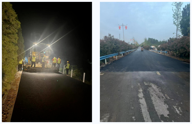 為確保節(jié)日期間伏羲山景區(qū)道路的順利通行,我公司路面鋪裝項目部全體施工人員放棄休息,堅守崗位,緊盯工程進度,搶抓晚上有利施工時機,以飽滿的工作熱情和昂揚斗志,連續(xù)奮戰(zhàn)80小時,順利完成了該路段瀝青攤鋪任務,為群眾出行提供了暢、安、舒、美的通行條件。