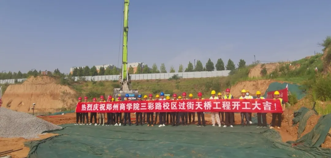 6月22日,鄭州商學院三彩校區(qū)過街天橋的建設項目如期迎來了開工典禮。當日上午9時,施工現場彩旗飄揚,氣氛熱烈。伴隨鞭炮聲的響起,位于7-1承臺1號樁的旋挖鉆正式啟動施工作業(yè),標志著商學院三彩校區(qū)過街天橋工程正式拉開帷幕。