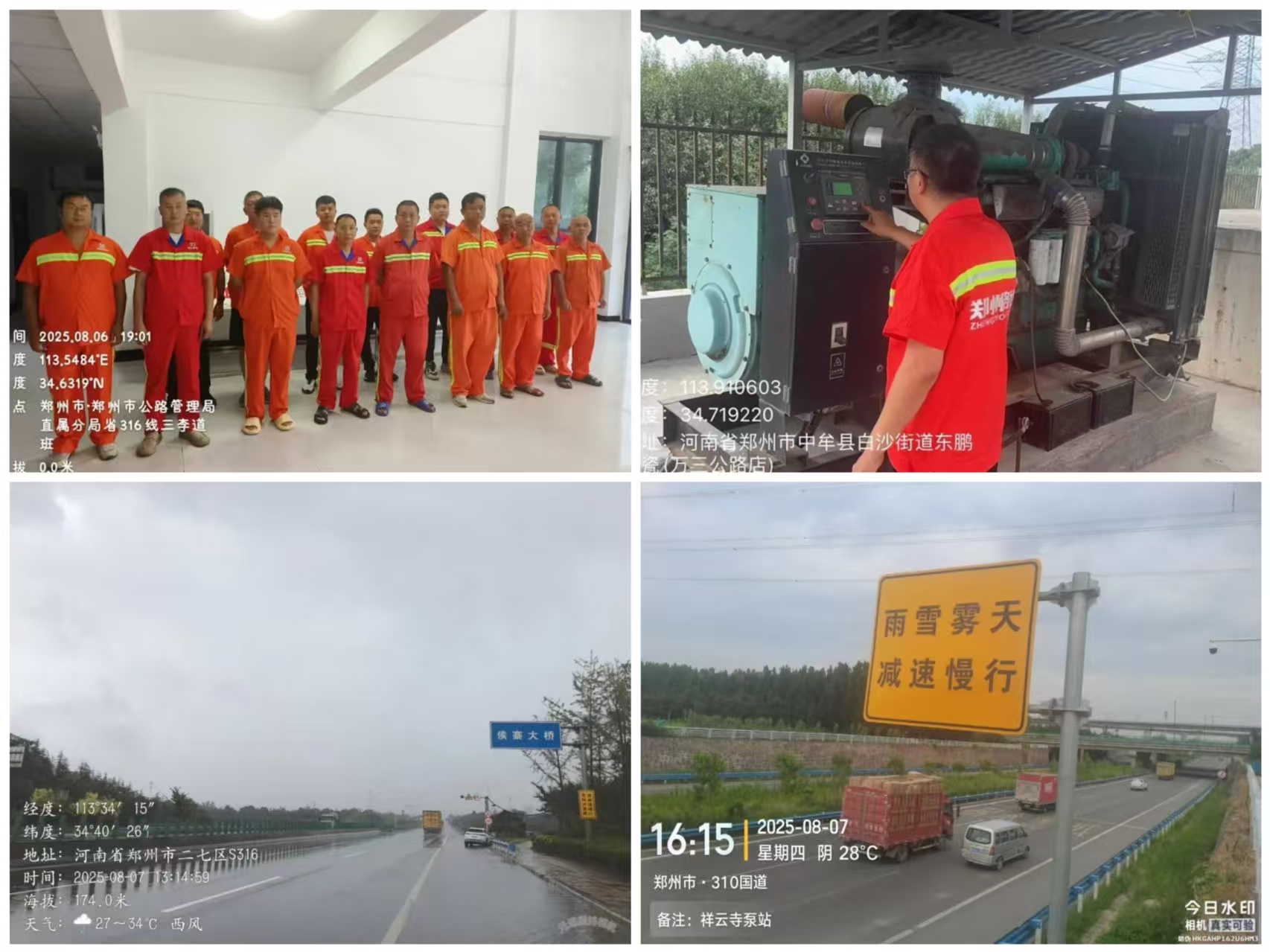 受今日暴雨的地域限制,鄭州境國省干線公路未受較大影響。但降雨路段的泵站立即啟動了抽排水設(shè)備,加快路面、橋涵的積水排除速度。各路段隨時關(guān)注水位,一旦出現(xiàn)積水超安全范圍的情況,養(yǎng)護人員立即采取斷行措施,引導車輛繞行,保障行人安全。針對易積水路段,應(yīng)急搶險人員、防汛物資、排澇設(shè)備全天候待命,如出現(xiàn)積水苗頭或隱患,能迅速投入到排澇作業(yè)中,將積水對交通的影響降到最低。此外,公司目前儲備物資充足,黨員、青年突擊隊均堅守崗位,隨時響應(yīng)調(diào)度指令,能夠在防汛一線發(fā)揮先鋒模范作用,全力筑牢城市交通防汛安全屏障。